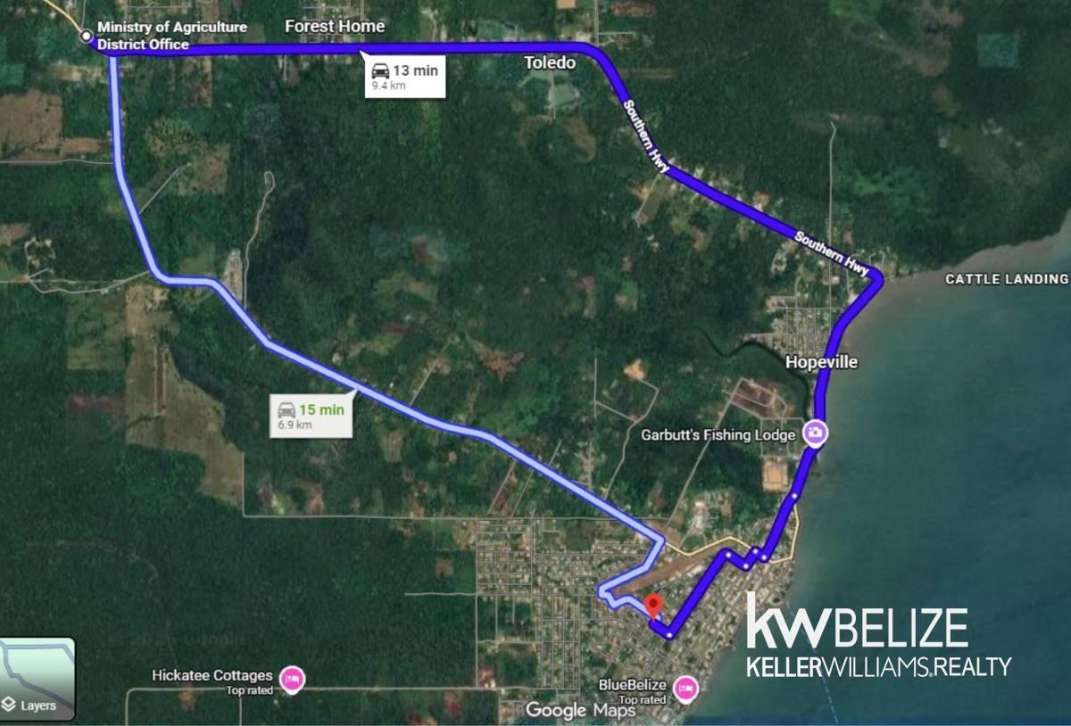 This property is located in Eldridgeville, Toledo District, Belize, directly along the Southern Highway. It is approximately 6 kilometers (15 minutes) from Punta Gorda Town, providing easy access to shopping, services, and the local market.
