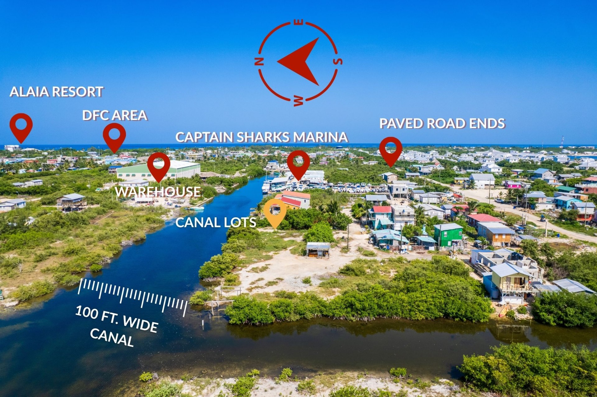 The DFC area (named after the Development Finance Corporation) was originally developed in the early 2000s to help belizeans to own property via bank financing. It has since evolved into a large residential community housing a mix of Belizeans and expatriates. Surrounding neighborhoods such as San Pablo, San Marcus, and Esmeralda offer easy access to shopping, services, and downtown San Pedro — all connected by now fully paved roads. The DFC area remains one of the few places this close to town where canal front lots are still available at reasonable prices.