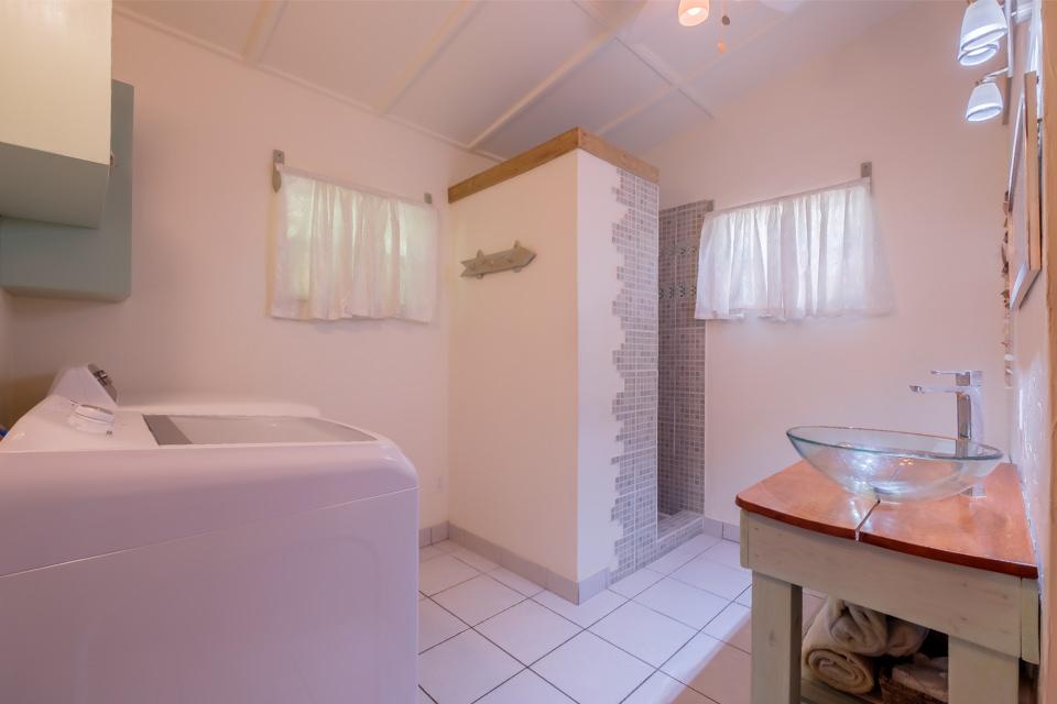 Outside, enjoy a 120 sq ft bodega with power, water, and loft storage, plus a cozy hammock lounge with three hammocks, perfect for relaxing in the island breeze.